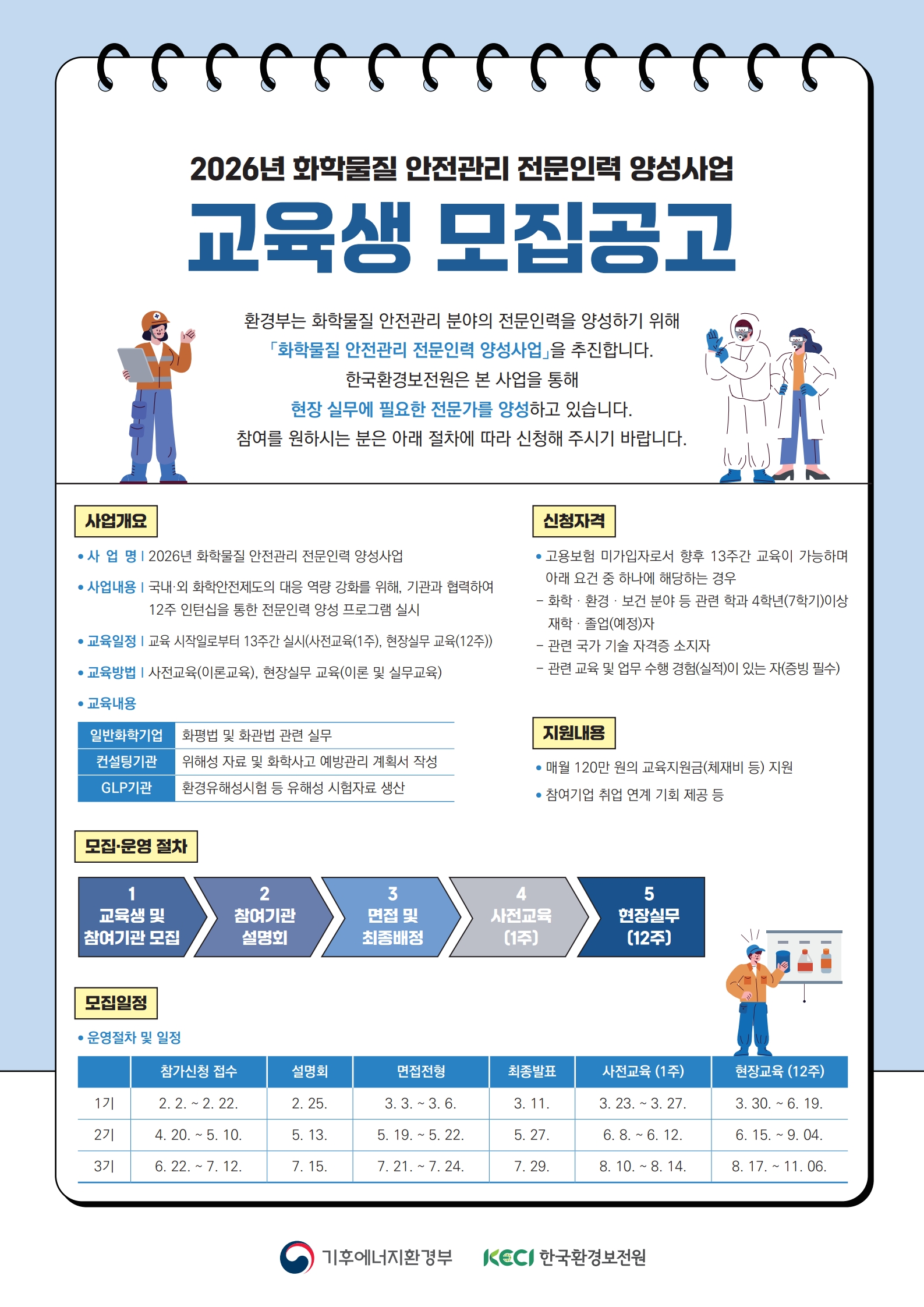 fnctId=bbs,fnctNo=884 2026년 화학물질 안전관리 전문인력 양성사업 교육생 모집공고 작성일2026.02.19 수정일2026.02.19 작성자 송*란 조회수25 첨부파일 첨부파일이(가) 없습니다.