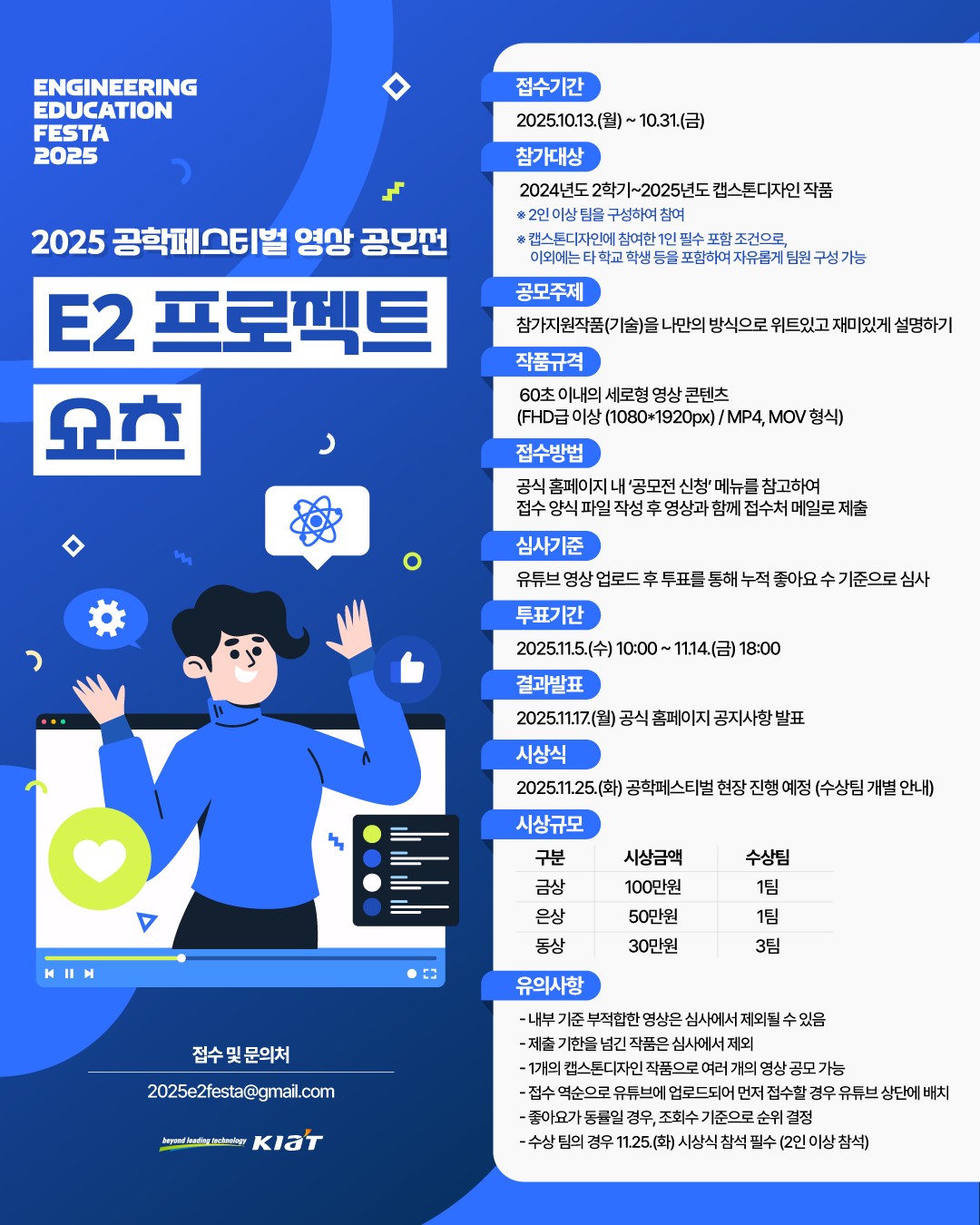fnctId=bbs,fnctNo=888 2025 공학 페스티벌 E2 프로젝트 쇼츠 작성일2025.10.01 수정일2025.10.01 작성자 송*란 조회수24 첨부파일 첨부파일이(가) 없습니다.