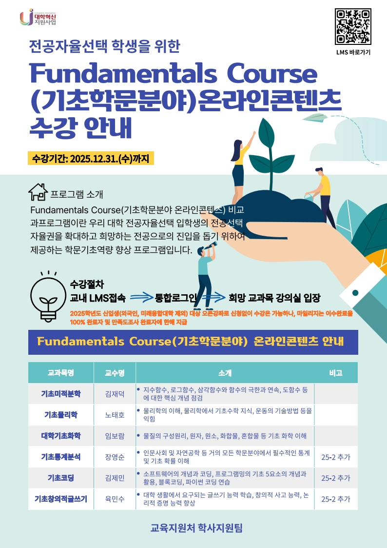 전공자율선택 학생을 위한 Fundamentals Course(기초학문분야 온라인콘텐츠) 프로그램 안내